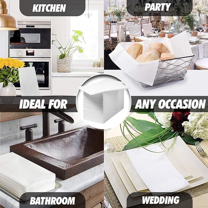 - VERSATILE FOR ANY OCCASION: These luncheon napkins are ideal for home bathrooms, corporate restrooms, and special events like weddings, birthdays, and holidays. Use in restaurants, spas, gyms, or any space where hygiene and sophistication matter. These towels elevate every setting with practicality and style.
