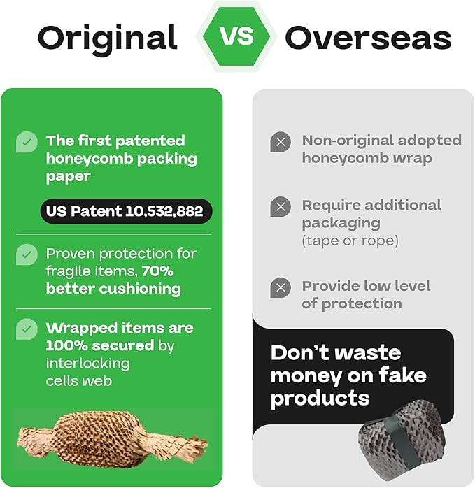 - THE ONLY PROVEN SLIT PAPER TECHNOLOGY: The HexaFil produced by the slit paper technology was developed over 30 years ago. Five years ago, the technology was improved, and a new interlocking design system was added to create even better packing material with extra cushioning. The newly engineered hexagonal cells allow the honeycomb wrapping to expand as you pull, creating a high-performance void filling material. The achieved three-dimensional cushioning product (paper) replaces traditional plastic, bubble, and other paper-based packaging products in terms of properties and efficiency