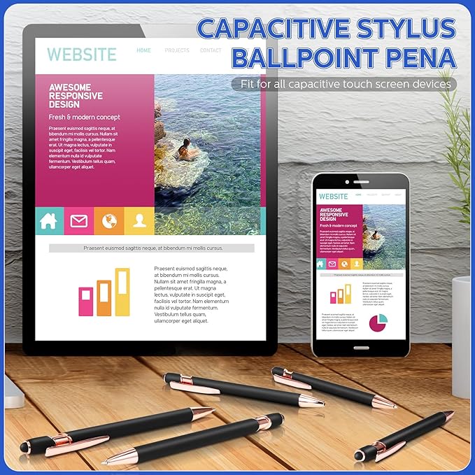 12 Pieces Ballpoint Pen with Stylus Tip, 1.0 mm Black Ink Metal Pen Stylus Pen for Touch Screens, 2 in 1 Stylus Ballpoint Pen (Black and Rose Gold)