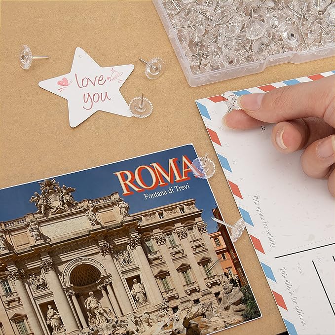 150PCS Clear Thumb Tacks - Standard Push Pins With Steel Points and Transparent Plastic Heads for Bulletin Boards, Crafts, and Office Organization