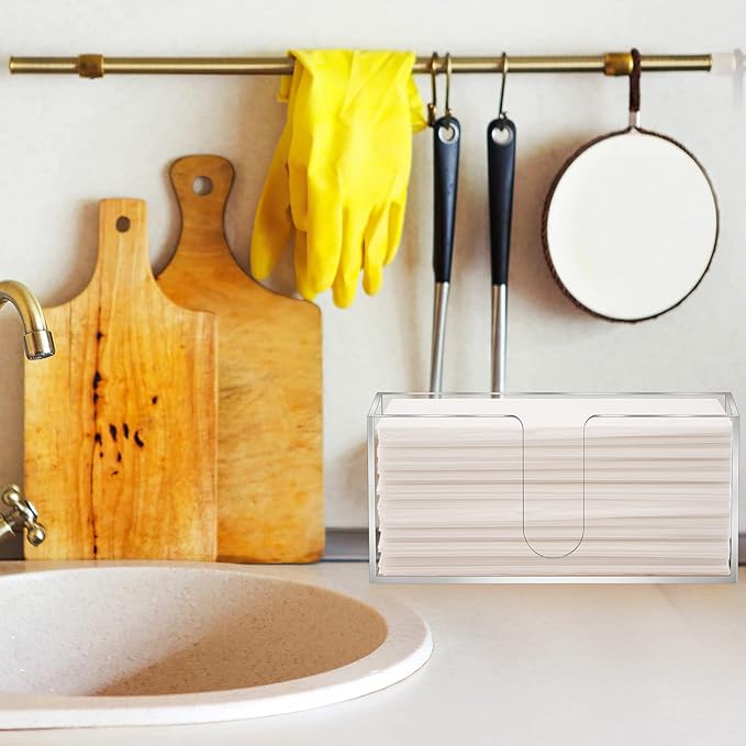 - DURABLE ACRYLIC MATERIAL:The ccountertop paper towel dispenser holder is made of high-quality acrylic material, 5mm thickness acrylic tissue holder is impact-resistant, reliable and sturdy, tear-resistant and wear-resistant, not easy to break or deform, the top slot is wide, you can easily pull out the towels,serve you for a long time, you can use it with confidence
