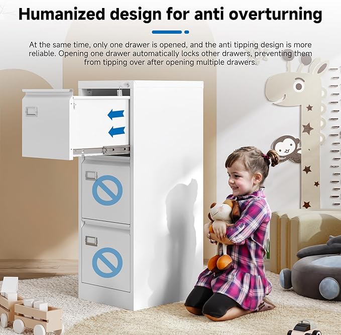 - 【HIGH SECURITY】This file cabinet can lock 3 drawers at the same time with one lock, and is equipped with 2 keys. With an anti-tilting mechanism, when 1drawer is opened, the interlocking system prevents the other drawer from opening, thereby preventing tipping and protecting your safety.