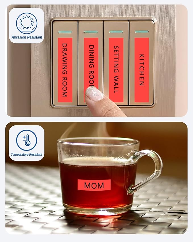 - These compatible for brother label maker tape 18mm 0.7 TZe-441 TZe441 have strong adhesive and no sticky residue when you remove it. The split back design of ptouch label tape 18mm red tape is very easy to peel off