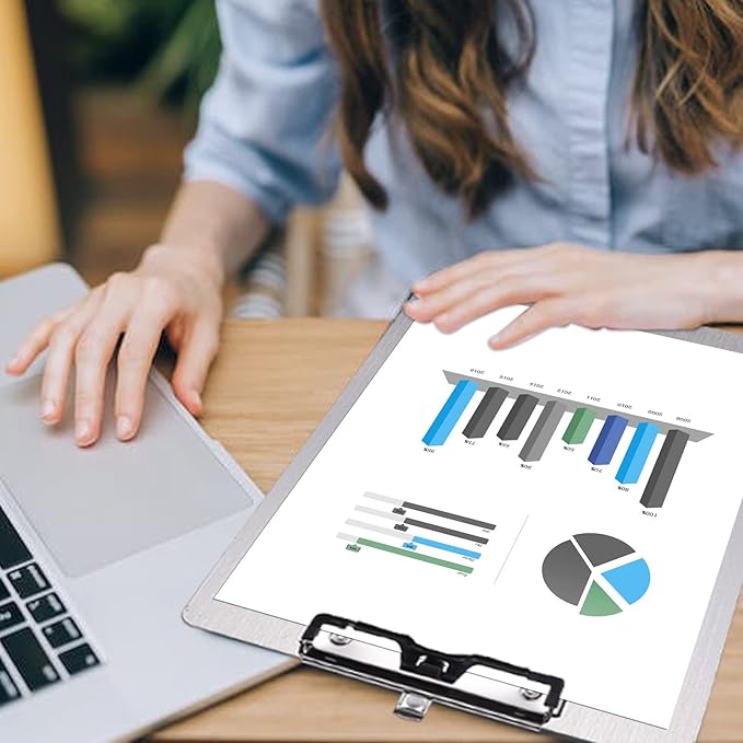 - - Large Capacity Spring Clip: Can hold A4 sized paper and acts as a mini whiteboard(excluding whiteboard pens).