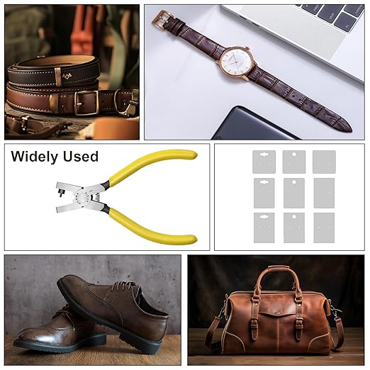 - Ergonomic Efficiency: Features a double-lever mechanism for effortless punching. Non-slip yellow handles fit palms perfectly, enabling one-handed operation without fatigue—ideal for watch straps, belts, and crafts.