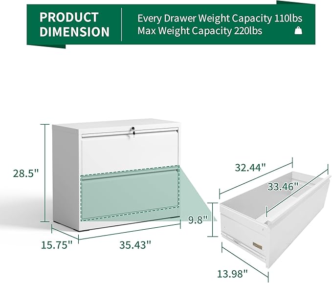 - 【Sturdy & Durable Construction】Lateral filing cabinet with 2 drawer is made of high-strength all-steel material, which is sturdy and not easily deformed. The powder-coated surface can protect it from corrosion and rust, further extending its service life. Wide lateral filing cabinet holds 220 lbs and holds printers, scanners and more.