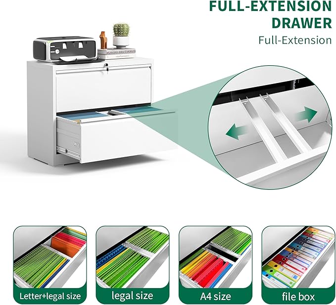 - 【Large Storage Space】Large 2 drawer lateral file cabinets have deep and spacious drawers, which can hold Letter, Legal, A4 and F4 size file folders. The adjustable hanging bars allow you to customize the drawers to your specific needs, keeping your files organized and easy to access.