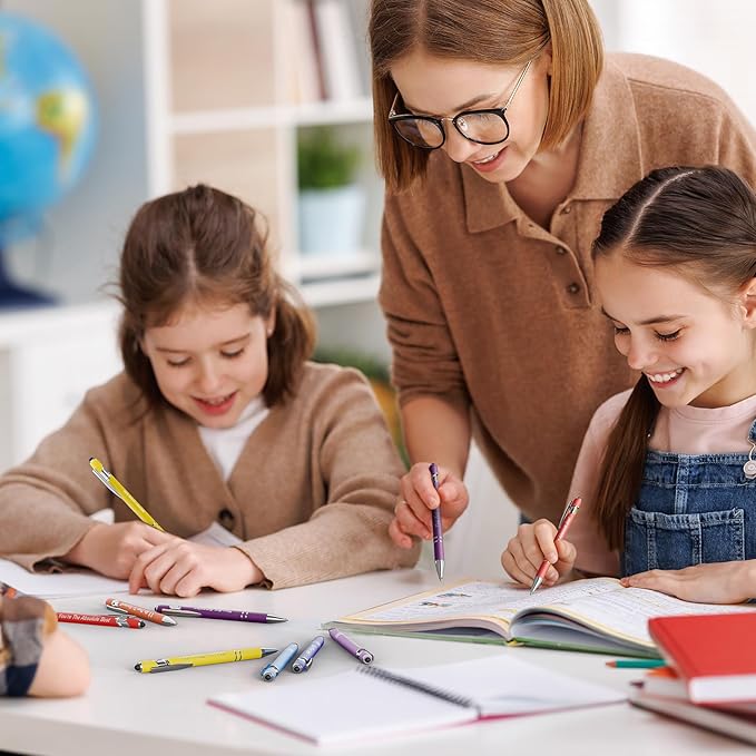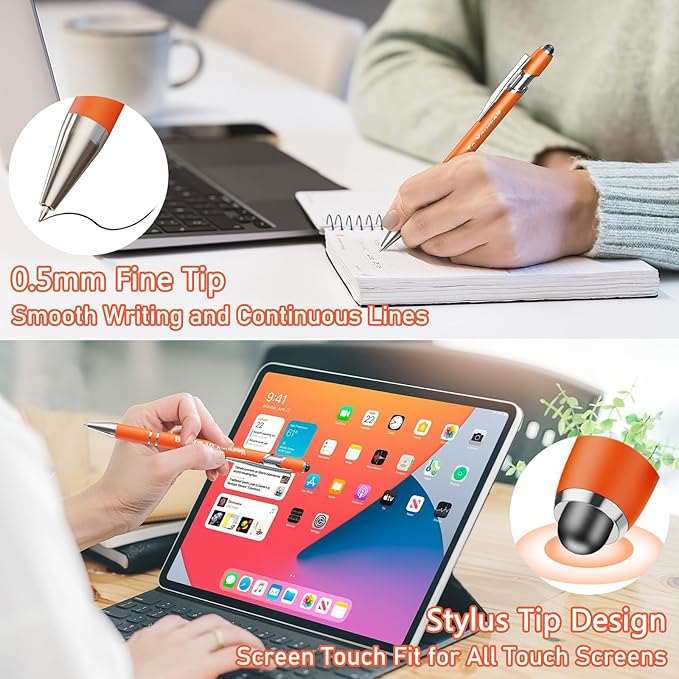 - 【Stylus Tips】Our ink pens in bulk are pens with stylus tips, 1 pen for 2 uses, the smooth stylus tips allows you to easily slide the screen of your electronic device with touch screen function, you can use our pen when taking notes in online classes and transcribing online articles, making learning convenient and fast.