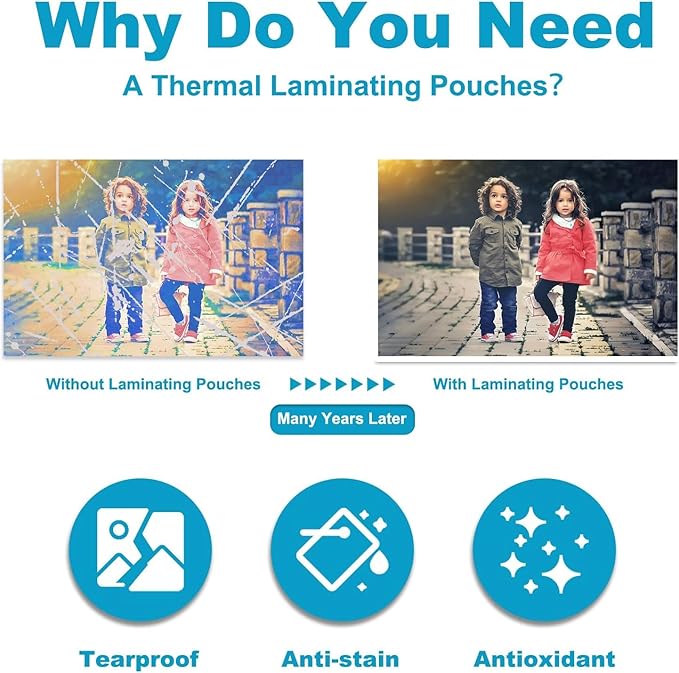 - 【Wide Application】: The laminate paper is great for protecting and preserving documents, photos, menus, recipe cards, certificates, children's artwork and more.