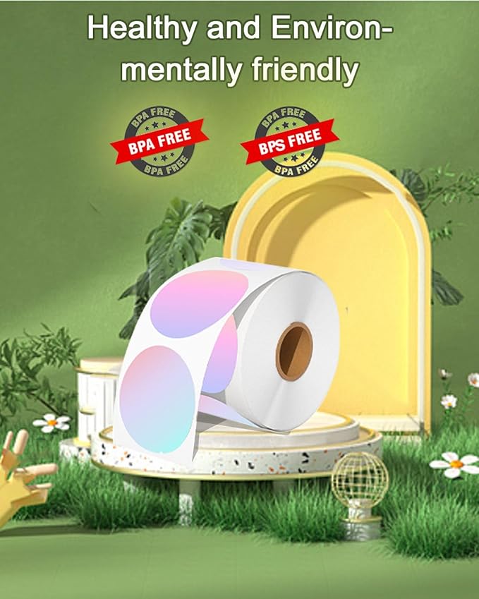 - [Specifications]: thermal labels with the size: 3" Round (500 Labels/Roll, 1 Roll, Gradient Purple),Paper tube diameter:0.98"(25mm)