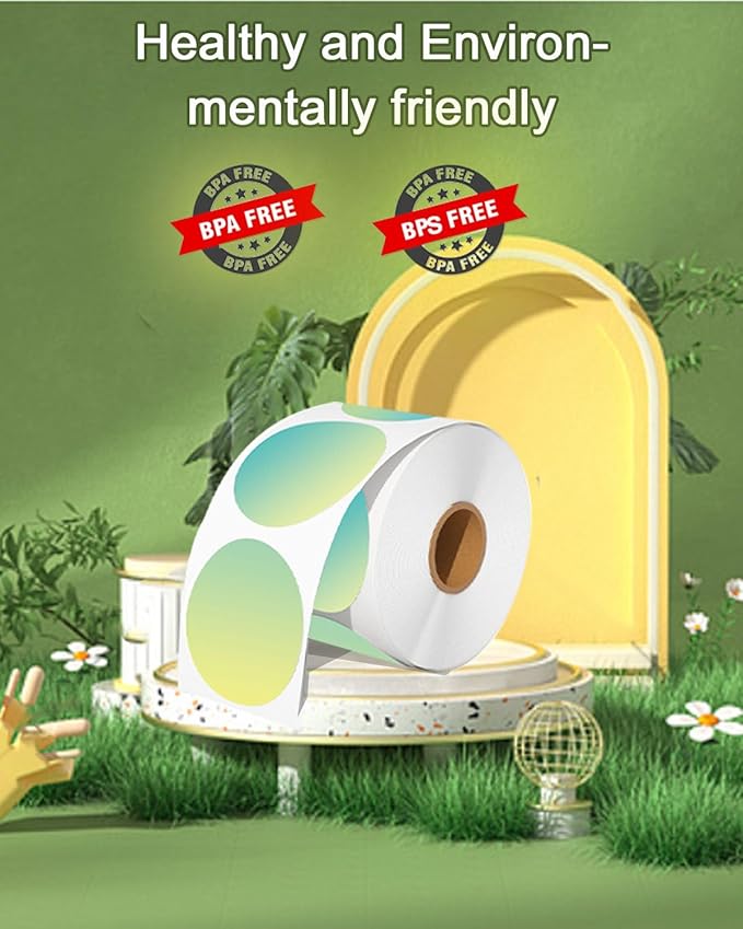 - [Specifications]: thermal labels with the size: 3" Round (500 Labels/Roll, 1 Roll, gradient green),Paper tube diameter:0.98"(25mm)