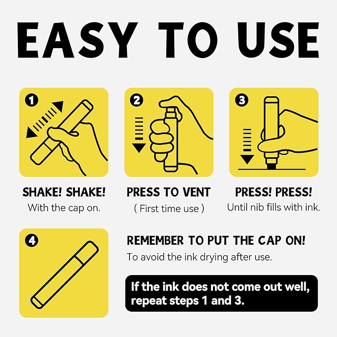 - Safety First β Our acrylic paint markers are non-toxic, Each thick permanent marker meets ASTM d-4236 and EN-71 safety standards, are suitable for artists of all ages, working seamlessly on rock, fabric, glass, wood, plastic, paper, and more