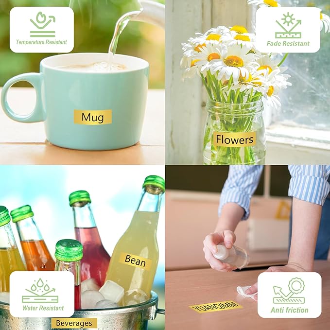 - Product Size: Width: 18mm 0.7 inch, Length: 26.2 feet (8m) for each 18mm 0.7 inch laminated gold label tape