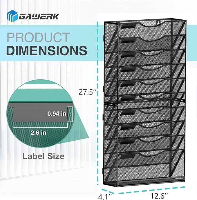 - Easy to Install - This mail organizer wall comes with mounting screws, you only need to drill 2 holes to mount it to the wall. And Our 11-tier wall paper organizer has an elegant look design with upgraded powder coat finish, anti-oxidation and anti-rust, which is enough for many years.