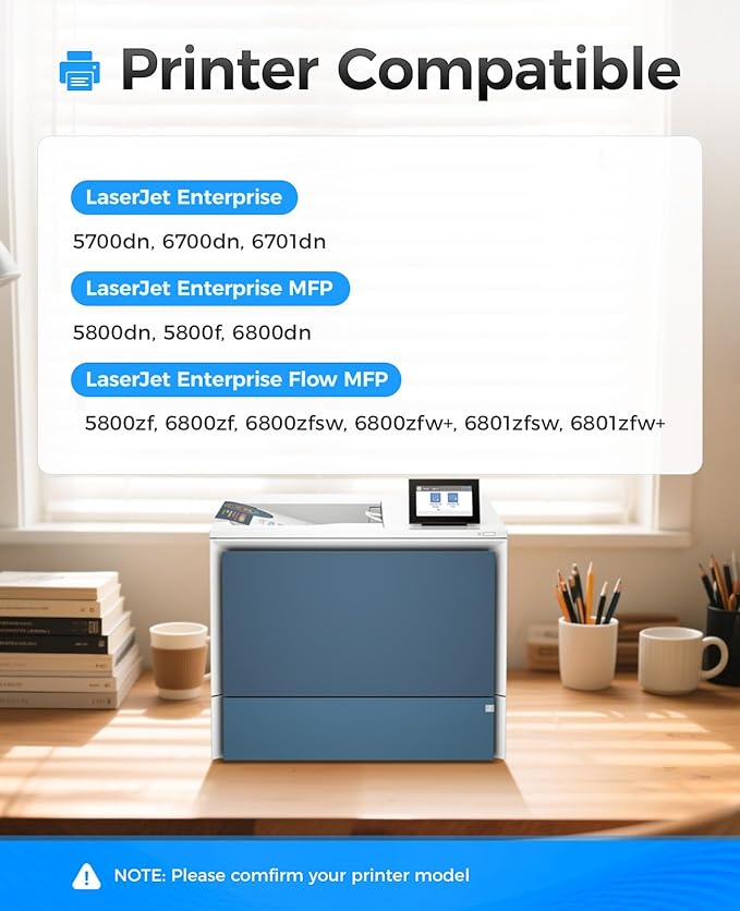 - Compatible Printers: Compatible with HP Color LaserJet Enterprise 5700dn 6700dn 6701dn, Color LaserJet Enterprise MFP 5800dn 5800f 6800dn, Color LaserJet Enterprise Flow MFP 5800zf 6800zf 6800zfsw, Color LaserJet Enterprise Flow MFP 6800zfw+ 6801zfsw 6801zfw+ Series Printer.