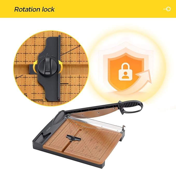 - Sturdy MDF Wood Paper Guillotine with Corner Rounder and Paper Clips: Equipped with aprecise quillotine blade and an aliqnment grid, this trimmer simplifies common cutting tasks. Its solid wood base ensures stability, making it perfect for both home and office use.