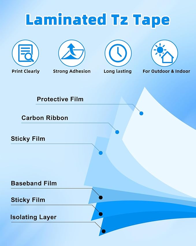 - Laminated for Durable Features: BAALAND 12 mm 0.47 laminated white tz tape is laminated design for strong durability and longevity, withstands water, fade, sunlight and high/low temperature from-22° (-30°C) To 258° (120°C), so it is durable for use outdoor or indoor