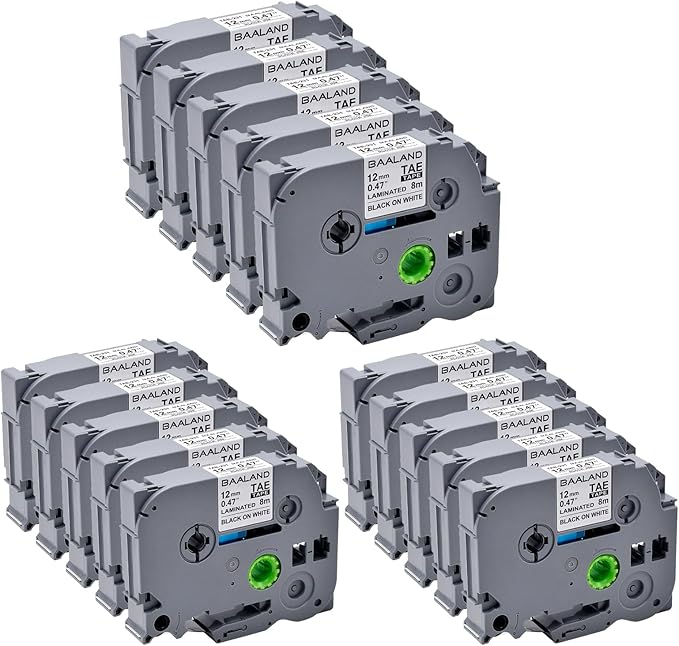 - 15 Pack BAALAND TZe Tz Tape 12mm 0.47 Black Ink on White Tape. Width: 1/2" (12mm); Length: 26.2' (8m); Model: Replacement for TZe231 TZ231 label maker tape 12mm