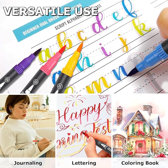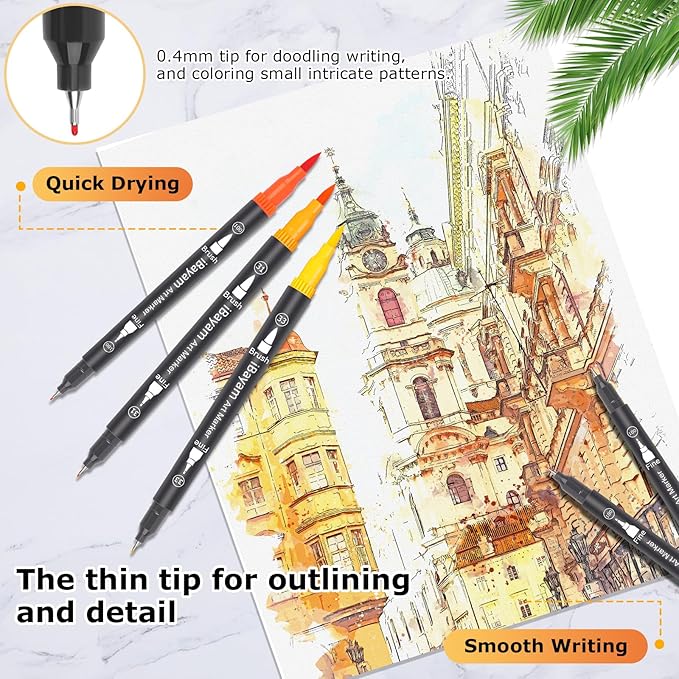 - Dual brush tip markers allow for both fineline detail work and broad strokes, great for journaling, calligraphy, drawing, and more.