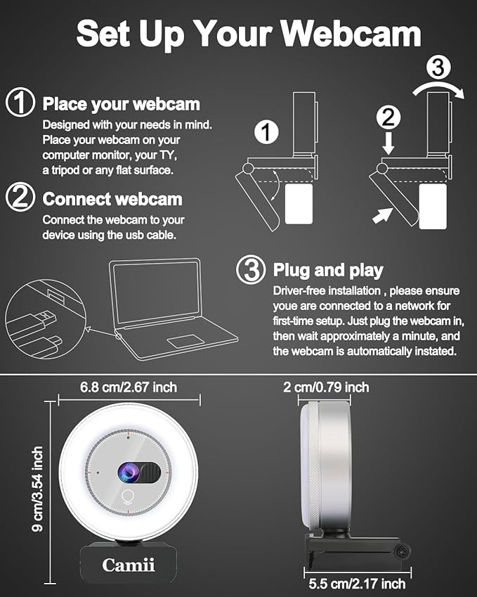 - [Highly Compatible with Mainstream Platforms and Systems]: The webcam's compatibility is super broad for Zoom, Facetime, Google Meet, Skype, YouTube, Facebook and many other software, compatible with Windows 7/10/11, MacOS10.10 or later, Linux, Android TV 7.0 or higher. It is ideal for individuals, groups, companies, corporations and for conducting online learning, work and play.