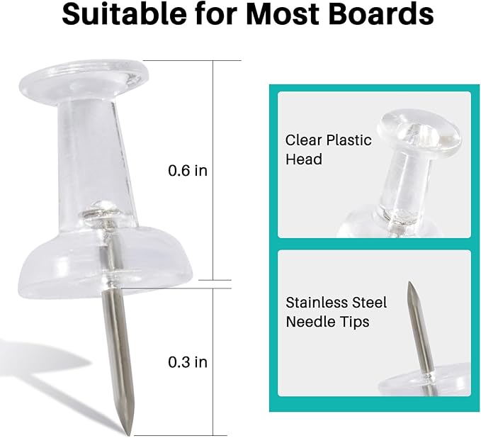 - 【Easy to Use & Storage】 - The push pins offer multiple usage possibilities and come with a storage box, ensuring their long-term usability. The tip of each tacks measures approximately 0.6 inches in length, while the head is around 0.3 inches. Their durable construction make them effortless to handle and highly reusable, without any sacrifice in performance or quality