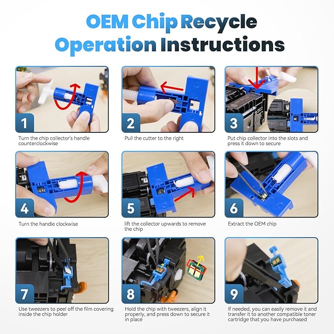 - No Chip: These 218X toner cartridges do not have chips but with DIY tool. Please remove the old original chip and install it into our toner cartridge (tools already included)