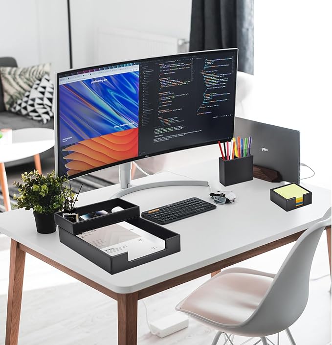 - Office Supplies Set Sturdy and Well-Made: our each desk organizers accessories internal is made of MDF material,Surface high-quality PU leather with exquisite hand stitching๏ผBeautify any office desk๏ผA great addition to anyoneโs home office! No complicated installation process is required,Open the box to upgrade your office.