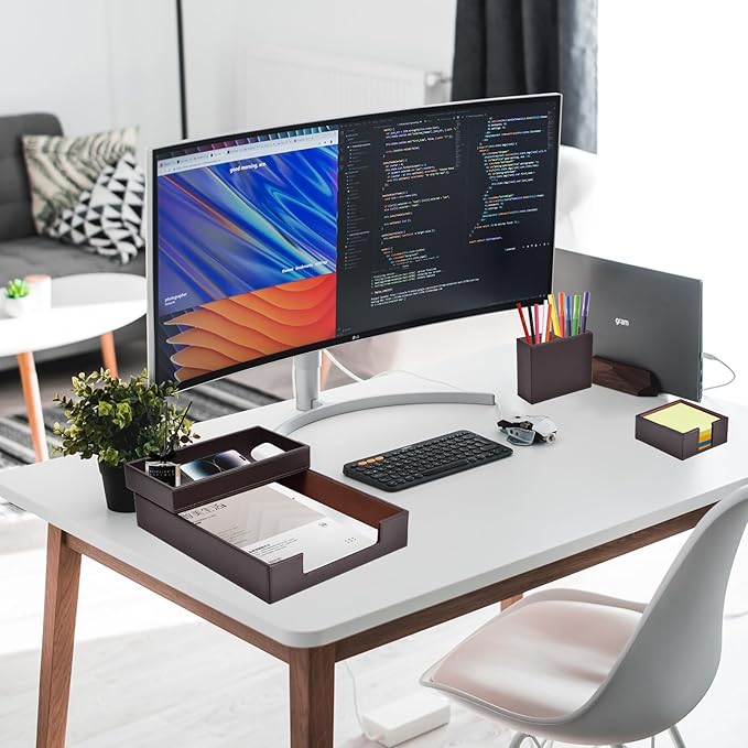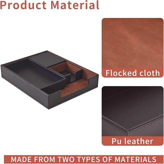 - Office Supplies Set Sturdy and Well-Made: our each desk organizers accessories internal is made of MDF material,Surface high-quality PU leather with exquisite hand stitching๏ผBeautify any office desk๏ผA great addition to anyoneโs home office! No complicated installation process is required,Open the box to upgrade your office.