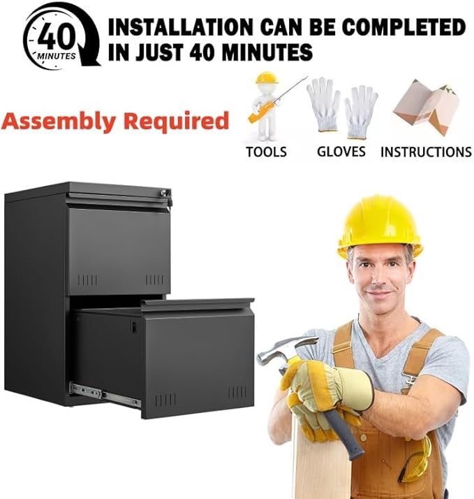 - Smooth and Silent Drawer Operation: This 2 drawer file cabinet is equipped with precision-engineered silent drawer slides that provide smooth and silent operation. Whether you're working in a busy office or a quiet home office, this file cabinet guarantees effortless drawer movement. The smooth glide mechanism ensures that the drawers of this filing cabinet withstand heavy use, offering long-term durability and a quiet workspace. The small file cabinet design ensures it doesn't take up much space but still provides ample storage, making it perfect for home offices or smaller workspaces.
