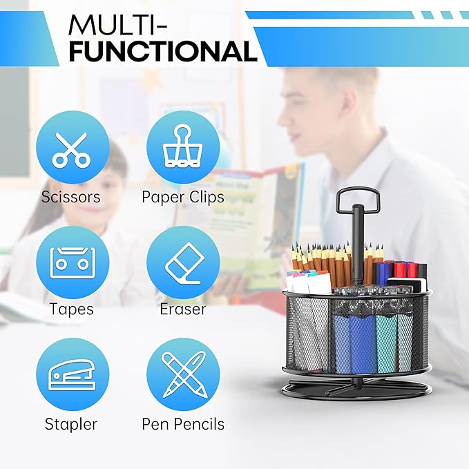 - 【360 Degree Rotating Design】:The pencil holder organizer that can be rotated 360 degrees features 4 storage spaces for storing a wide variety of office stationery. You can easily get the stationery you want by rotating it randomly