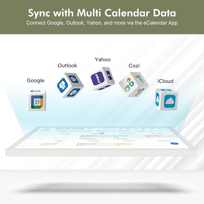 - ☪Streamline Your Life with Seamless Calendar Sync: Say goodbye to scheduling chaos. This smart interactive touchscreen calendar wirelessly syncs with Google, Yahoo, and other major platforms via the eCalendar app—keeping all your events in one place. Share schedules for smooth family coordination or keep them private for personal planning. The perfect gift for moms, dads, grandparents, families, and friends who value organization and connection.