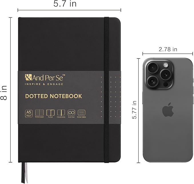 - 160 PAGES THICK DOTTED JOURNAL: 80 sheets/160 dotted paper notebook to provide you ample space to write. A5 size 5.7'' Γ 8'', perfect size for carrying around or put into your bag or purse, a convenient choice for on-the-go individuals