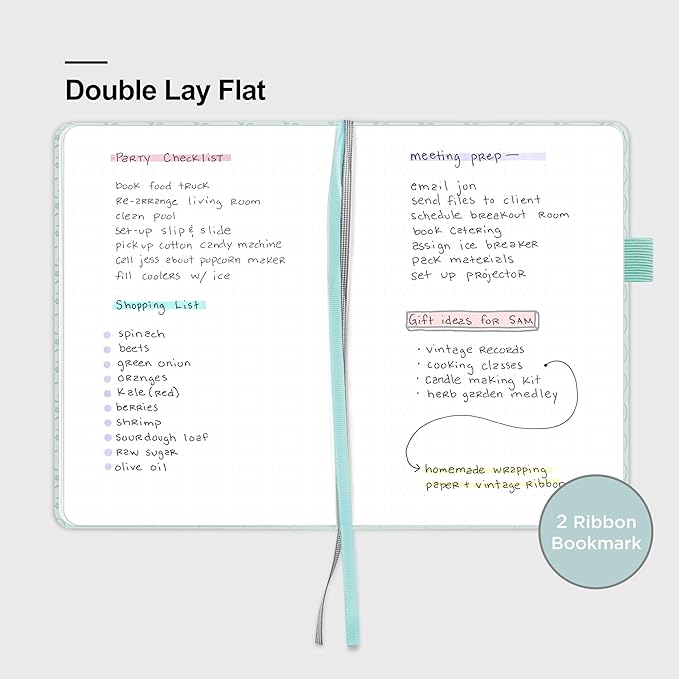 - 180Β° LAY-FLAT DESIGN: The lay-flat design allows for easy writing and ensures that you can utilize every page efficiently. Journaling, note-taking and planning has never been easier! 2 Bookmarks to help you find important content faster