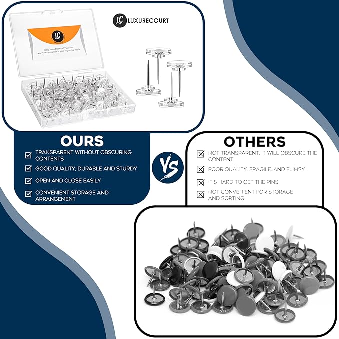 - Convenient Storage Box - You get 150 clear thumbtacks neatly stored in a compact, transparent box. Stay organized and ready for any task without worrying about losing wall pins or creating clutter.