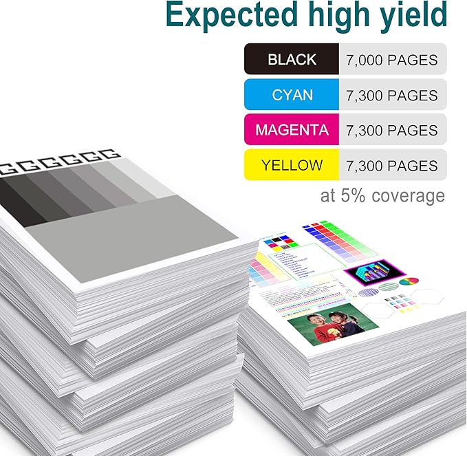 - High Page Yield: Up to 7,000 pages per black, 7,300 pages for Color Toner Cartridges at 5% coverage