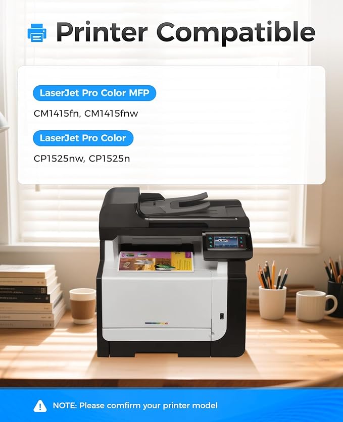 - Compatible Printers: Compatible with HP LaserJet Pro Color MFP CM1415fn CM1415fnw LaserJet Pro Color CP1525nw CP1525n Printer.