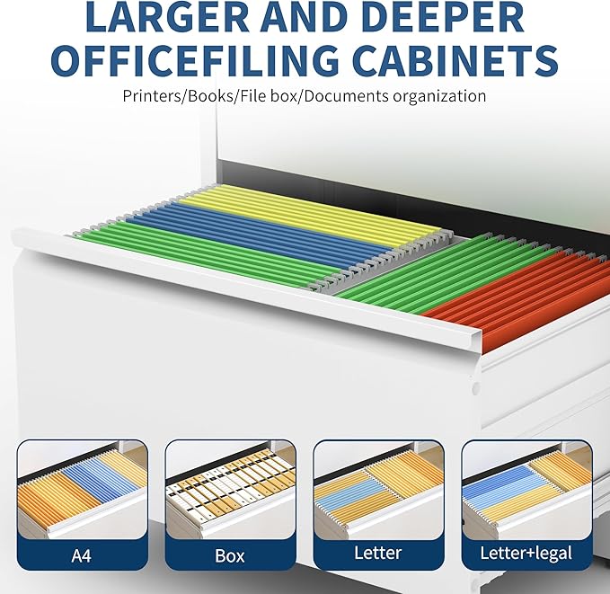 - 【Durable Construction】 Crafted from high-quality cold-rolled steel, our file folder cabinets features a powder-coated, phosphate-free epoxy finish. This ensures robust durability, resistance to scratches and rust, completely odorless and effortless cleaning, making it a long-lasting addition to your office or home.