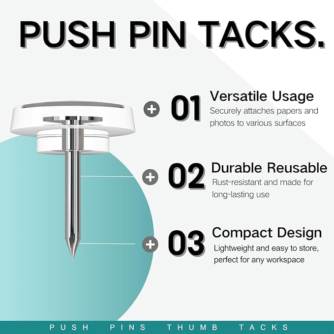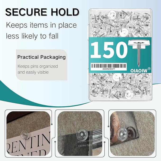150 PCS Flat Clear Short Push Pins for Wall Thumb Tacks for Walls Flat thumbtacks Push pin for Bulletin Board Shadow Box Display Thumbtack for Cork Board