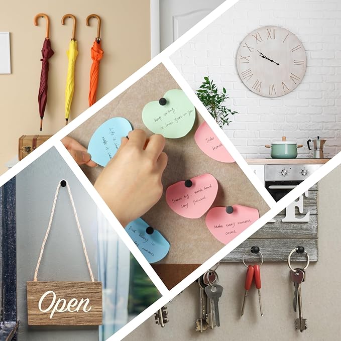 - 40 PCS PICTURE HANGERS: This package contains 40 thumb tacks, along with an easy-to-store transparent box. You can easily pick out the wall hangers without nails every time you use them. You don't need to worry about losing or misplacing them.