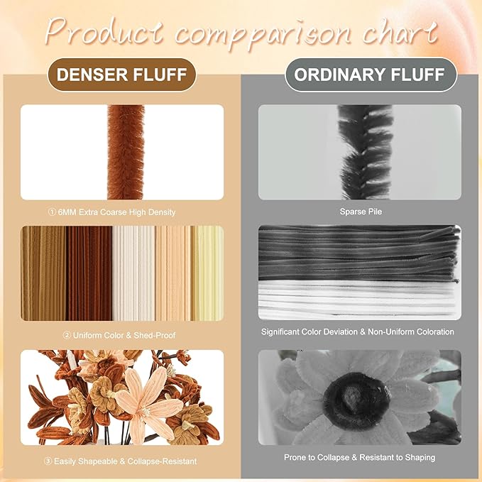 - 【Durable and fade-resistant】Chenille stems for crafts stay vibrant for years,built to last ,won’t fade like real flowers,handmade shows you care.Please feel free to contact us if you have questions,no matter via phone, email, or live chat,we’re happy to help and will respond within 24 hours!